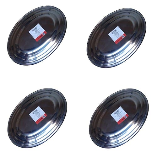 Kit contendo 4 Bandejas Ovais em Inox medindo 26 x 19 x 2 cm