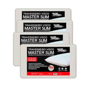 Kit 4 Travesseiros Nasa Ortopédico Anatômico O Travesseiro Master Viscoelástico possui uma tecnologia desenvolvida pela Nasa e é ideal para quem busca conforto e qualidade. Revestido com 100% de poliéster e espuma de poliuretano. Deixando o momento de dormir tranquilo e revigorante, levando bem-estar para suas noites de sono.