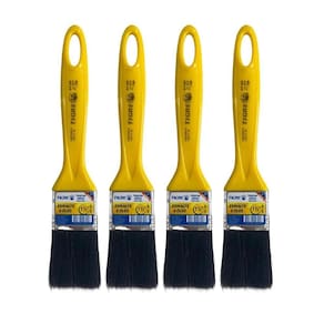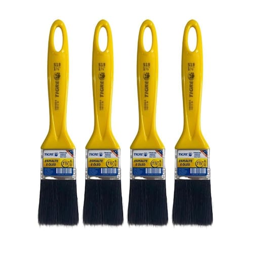 Informações técnicas: Tamanho: 1.1/2 38,1mm Cor: Amarelo Materiais: - Cabo: Plástico - Cerdas: Sintético Superfícies aptas: Paredes de alvenaria, madeira, gesso e drywall, metal e tetos Referência: 519 Indicado para: Tinta esmalte e óleo Cerdas macias