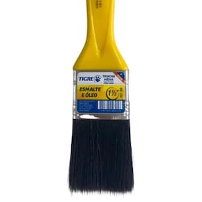 Informações técnicas: Tamanho: 1.1/2 38,1mm Cor: Amarelo Materiais: - Cabo: Plástico - Cerdas: Sintético Superfícies aptas: Paredes de alvenaria, madeira, gesso e drywall, metal e tetos Referência: 519 Indicado para: Tinta esmalte e óleo Cerdas macias