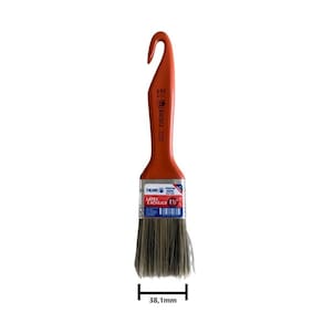 Informações técnicas: Tamanho: 1.1/2 38,1mm Cor: Laranja Materiais: - Cabo: Plástico - Cerdas: Natural Gris Superfícies aptas: Paredes de alvenaria, madeira, gesso e drywall, metal e tetos Referência: 695 Indicado para: Tinta látex e acrílica Cerdas macias