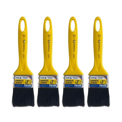 Kit 4 Trincha Pincel Para Pintura Tinta Esmalte Óleo 2'' Tigre A trincha, ideal para tintas esmalte e óleo, conta com cerdas macias e resistentes, que garante aplicação uniforme e acabamento perfeito. Cabo ergonômico proporciona conforto e precisão no uso. Perfeita para áreas grandes e detalhes, como: parede, teto, rodapé, canto e outras superfícies diversas, permitindo um trabalho rápido e de alta qualidade.
