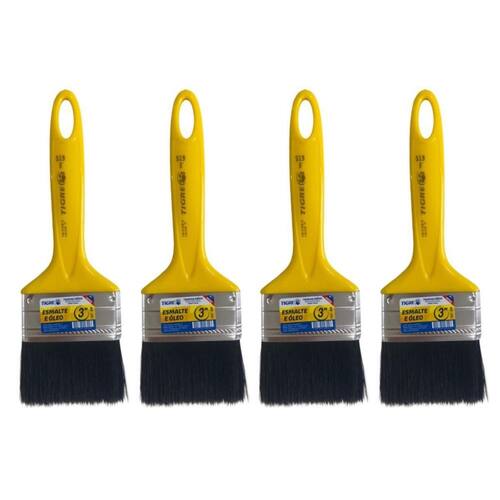 Kit 4 Trincha Pincel Para Pintura Tinta Esmalte Óleo 3'' Tigre A trincha, ideal para tintas esmalte e óleo, conta com cerdas macias e resistentes, que garante aplicação uniforme e acabamento perfeito. Cabo ergonômico proporciona conforto e precisão no uso. Perfeita para áreas grandes e detalhes, como: parede, teto, rodapé, canto e outras superfícies diversas, permitindo um trabalho rápido e de alta qualidade.