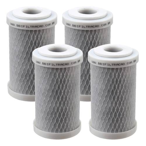Kit refil filtro carbon block 5 x 2,5 - 125 com 4 unidadesO kit acompanha 4 refis filtro carbon block 5 x 2,5 - 125 que contam com o sistema de vedação por encaixe. São produzidos com carvão ativado tipo carbon block e tem capacidade de reter partículas e reduzir o cloro presentes na água, inibindo o desenvolvimento de microrganismos e proliferação de bactérias, garantindo uma água de excelente qualidade para você.A bbi tem uma linha completa com todos os tamanhos de refis e elementos filtrantes para diversas aplicações. O refil filtro carbon block 5 x 2,5 - 125 de encaixe é totalmente compatível com diversos modelos de filtros e purificadores do mercado que utilizem o elemento filtrante do tipo carbon block ou carvão ativado de encaixe, como bbi f125, acqua 125, hidrofiltros pou 5, serve nas carcaças fit 5 planeta água, entre outros. O refil filtro carbon block 5 x 2,5 - 125 elimina partículas de barro, ferrugem, areia e outros sedimentos, reduz cor e turbidez, garantindo uma água pura e sem odores ou gostos indesejados, seja para beber ou para a preparação de alimentos e bebidas, com uma capacidade de filtragem de 5 micra e 100 litros hora. Fácil de dar manutenção, você mesmo troca o seu refil Vantagens e benefícios- ótima eficiência na remoção de cloro livre;- evita a proliferação de bactérias;- auxilia na retenção de sólidos e sedimentos suspensos na água, além de reduzir cor e turbidez;- preparação de alimentos e bebidas sem cloro, gostos e odores desagradáveis;- reposição de filtros e purificadores instalados em ponto de uso- compatível com diversos filtros e purificadores com carcaça de encaixe e altura de 7 polegadas; Características técnicasEncaixe/vedaçãoAltura: 5 polegadasØ externo: 2,5 polegadasDimensões do produto comp x larg x alt : 71,0 x 71,0 x 127 mm Composição:Elemento filtrante: carvão ativado compacto - origem vegetalAcabamentos: tampas, tnt e tela em polipropileno pp / arruelas de vedação em elastômero atóxicoTemperatura de operação: máx. 70 °c / mín. 1 °cPressão de operação: máx. 40 mca 4,0 bar / mín. 2 mca 0,2 bar Classe retenção partículas micra : 5Eficiência redução cloro livre: aplicávelVazão máxima recomendada: 100 litros/horaConteúdo da embalagem: 4 kit refil filtro carbon block 5 x 2,5 - 125