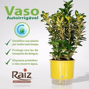 O vaso raiz auto irrigável é perfeito para deixar as plantas dentro de casa, possui um sistema de autoirrigação, por meio de indução, uma raiz artificial leva a umidade necessária para a planta, assim mantendo por até 10 dias toda a água necessária para a planta sobreviver.