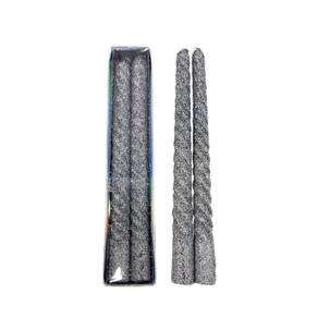 Kit 4 Velas Retorcidas De Natal Decorativa Com Glitter Prata
