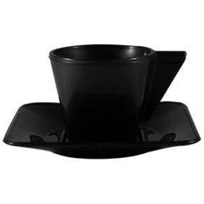 Kit 4 Xícara E Pires Preto 50Ml Plástico