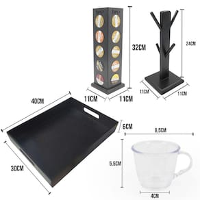 Kit 4 xicaras acrílico cristal porta capsulas para 3 corações bandeja Composição do kit;4 xícaras1 bandeja1 suporte de xícaras1 porta capsulas para 3 corações Xícara 85ml acrílica transparente As xícaras são muito bonitas e esse acrílico cristal traz um charme a mais ao produto, deixando-o ele mais decorativo para a hora do café. Você pode usar em casa ou no escritório, ter sempre à mão sua xícara para tomar aquele cafezinho, capuccino e até um chocolate quente se estiver com vontade. Capacidade 85mlMaterial - acrílicoAltura - 5,5 cmLargura - 8,5 cm Bandeja cantinho do café versátil e multiuso Feita em mdf de 6mm com pintura em tinta acrílica na cor preta ela é ideal para organizar o seu lar, servir um cafezinho para os amigos, organizar papeis de escritório entre diversas outras utilidades. Bandeja versátil de qualidade, combinando com todos os ambientes no qual estiver Suas medias são40x30x6 externa 38,5 x 28,5 x 5,5 na parte interna Possui as laterais vazadas como uma alça. Suporte porta xícara caneca 4 pinos xicaras Esse é o produto ideal para decorar o seu tão especial cantinho do café ou até mesmo presentear uma pessoa querida, além da beleza o porta xicaras é feito em mdf que é muito resistente, ideal para xicaras/canecas de 240ml. Com esse porta xicaras você vai conseguir deixar seus armários muito mais organizados. Medidas suporte:Altura: 24 cmBase: 11x11Peso: 282gMaterial de composição: mdf/pinus Porta cápsula para cápsulas 3 corações Esse porta cápsulas tem ar moderno feito em madeira mdf pintada de preto, dando um ar de elegância para qualquer canto de sua casa. Organize seu cantinho do café com as cápsulas sempre a mão e ainda decore o seu ambiente com certeza vai ser uma peça que vai chamar a atenção e tirar elogios Feito em mdf com pintura preta tinta acrílica Comporta 20 capsulas 3 coraçõesMedidas 32x11x11 Cápsulas não inclusas Perguntas frequentes: - entregam para todo país Quem somos Marca: Dupétriz