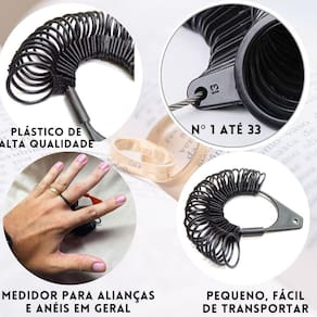 Kit 40 Aneleira Régua De Plástico Para Medir Dedo Medidor Anel Aliança Aneleira plástica com tamanhos de 2 ao 33 é indicado para medir dedo, para alianças e namoro, noivado e casamento, assim como anéis de modo geral. Fácil de usar e operar a preços acessíveis. Ferramenta prática do tamanho da joia do tamanho do dedo para o joalheiro. Descrições: Leve, portátil tomado e tão conveniente. Alto desempenho e em acabamento requintado. É preciso, permite que você tome o tamanho do seu dedo. Adequado para uso doméstico ou uso semi-. Marca: Não Informado Ean: 7732647221281