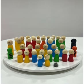 Kit 40 Bonecos - Madeira - Bonecos para Constelação Familiar Kit Família Sistêmica em Madeira, desenvolvidos e adequado para a construção de constelações familiares em terapia individual, assim como para treinamento e aconselhamento, ou para consultoria de equipes e departamentos de uma organização. São 40 bonecos, sendo 02 casais de avós + 06 casais de adultos + 03 casais de adolescentes + 4 casais de crianças + 02 bebês + 1 recém-nascido + 1 totem + 01 representante de dinheiro + 01 representante de dúvida + 1 caixa para bonecos. Tamanho aproximado: 9 cm adultos, 07 cm adolescentes, 06 cm crianças, 05 cm animais. Os bonecos são produzidos com madeira Pinus, portanto podem conter detalhes que são característicos da madeira. O campo mórfico não acompanha os bonecos. Fotos meramente ilustrativas. Ean: 00000000000000