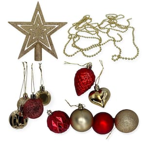 Kit 40 Enfeites de Natal Premium Decoração Completa Arvore Kit de Enfeites de Natal com Bolinhas - Decoração Festiva e Sofisticada Se você ama enfeitar a árvore e toda a casa durante o Natal, este kit com bolinhas será a escolha perfeita Com um design clássico, o kit contém 40 unidades de diferentes itens, com formas, texturas, tamanhos e tonalidades variadas. São corações, pinhas, bolas com glitter e muito mais, permitindo diversas combinações para enfeitar sua casa de maneira festiva e sofisticada. -versatilidade de Decoração: As bolinhas podem ser usadas em diversas decorações natalinas, como guirlandas, arranjos, centros de mesa e, é claro, na árvore de Natal. Cada uma delas contém uma cordinha em seu topo para que você possa amarrá-las e pendurá-las facilmente, tornando a decoração ainda mais prática. -durabilidade e Reutilização: Feitas com materiais de alta qualidade, as bolinhas são resistentes e duráveis, podendo ser reutilizadas em várias celebrações natalinas. Seu tamanho compacto as torna ideais para árvores de Natal de todos os tamanhos. Conteúdo do Kit: -01 Cordão de Pérolas Dourado-01 Estrela Dourada-05 Bolas de 6cm com Glitter-05 Bolas de 6cm Globo Cristalizado-05 Bolas de 6cm Fosca Vermelha-05 Bolas de 6cm Fosca Dourada-03 Bolas de 4cm com Glitter Vermelha-03 Bolas de 4cm com Glitter Dourada-03 Bolas de 4cm Metalizada-03 Bolas de 4cm Espiral-02 Corações Dourados-02 Pinhas Vermelhas Especificações: -material: Polipropileno-dimensões:-estrela: Largura: 20cm x Altura: 20cm-bolas Maiores: Diâmetro: 6cm x Volta completa: 19,5cm-bolas Menores: Diâmetro: 4cm x Volta Completa: 12,5cm-pinhas: Altura: 6,2cm x Largura: 4,5cm-coração: Largura: 4,5cm x Altura: 5,5cm-cordão de Pérola: 4,04 metros-peso: Aproximadamente 400g O kit de enfeites de Natal com bolinhas é uma opção elegante para a decoração festiva de sua casa. Composto por 40 unidades de diversos itens, as bolinhas são feitas com materiais duráveis e reutilizáveis. A variedade de formas, texturas e cores permite diversas combinações, tornando a decoração mais versátil e sofisticada. Complemente o clima natalino com este kit encantador e torne seu lar ainda mais especial nesta época tão especial do ano.