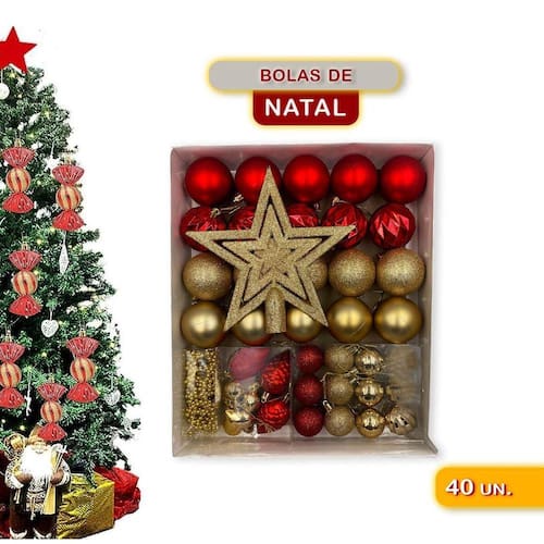 Kit 40 Enfeites de Natal Premium Decoração Completa Arvore