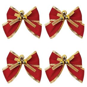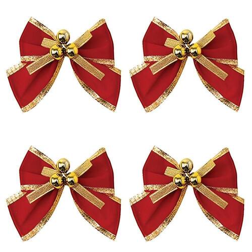 10 Kit Com 4 Laços Decorativo Vermelho E Dourado 10cm;