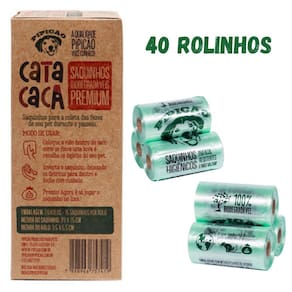 02 Kits 20 Rolinhos de Saquinhos Biodegradáveis Cata Caca Refil - 40 Rolinhos no TotalSaquinhos higiênicos biodegradáveis PIPICÃO para coleta das fezes de seu pet durante o passeio.Mantenha o espaço de convivência entre as pessoas e os pets limpo. Coletar os resíduos de seu cão é uma questão de educação e higiene.Quando sair para levar o seu pet para passear, não esqueça de levar os saquinhos higiênicos PIPICÃO. Os saquinhos PIPICÃO são resistentes, não vazam e ainda são biodegradáveis São 100% Verde, fabricados a base de amido de milho junto com polietileno conforme norma ASTM D6400- Saquinhos para recolher os dejetos de seu pet;- Proporciona um ambiente limpo;- Fácil utilização;- Os maiores e os melhores;- Total de 300 saquinhos.- Modo de Usar: Coloque a mão dentro do saco como se fosse uma luva e recolha os dejetos do seu pet. Inverta o saquinho deixando os detritos para dentro e feche com cuidado. Pronto, agora é só jogar o saquinho no lixo;- Informações do Produto:Modelo: Refil Saquinho Cata Caca;Tamanho do Rolo: 6 x 3cm;Tamanho do Saquinho: 39 x 25cm;Embalagem: 20 Rolos com 15 Saquinhos Cada;Marca: PIPICÃO. - Prazo de Entrega: Imediato.- Produto Nacional
