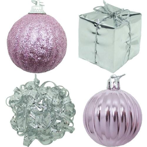 4 Kit Com 11 Pingentes Rosa E Prata De 5cm Para Árvore De Natal;