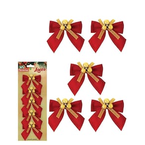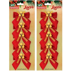 9 Kit Com 5 Laços Decorativo Vermelho E Dourado 9cm;