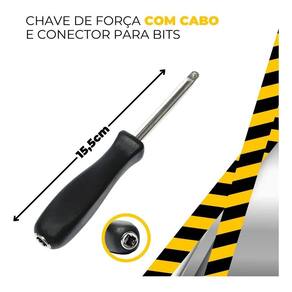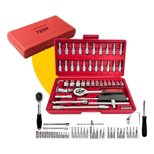 Especificações Técnicas: Marca: Tippi Quantidade de peças: 46 Material da maleta: Termo plástico leve e resistente Material das ferramentas: Aço cromo vanádio Tipo de encaixe: 1/4 padrão sextavado Dimensões da maleta: 24 cm C x 13 cm L x 5 cm A Peso: Aproximadamente 1,2 kg Tipo de catraca: Reversível com Quick Release e 45 dentes