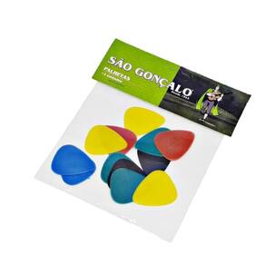 Especificações técnicas: - dimensões das palhetas: 30 mm (altura) x 25 mm (largura) - espessura das palhetas: 0.80 mm - material: nylon - kit contém: 04 pacotes com 12 palhetas nylon são gonçalo