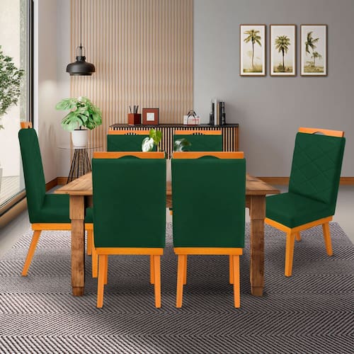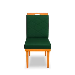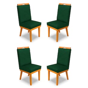 kit 4Cadeira Ana Matelassê tecido suede com Base Fixa de Madeira Maciça e Puxador Castanho - Verde