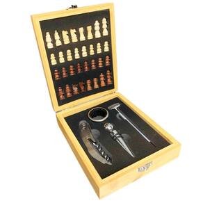 Kit 4un Acessórios Para Vinho Tabuleiro De Xadrez De Bambu Apresentamos o Kit 4un Acessórios Para Vinho Tabuleiro De Xadrez De Bambu em uma elegante Maleta. Este conjunto é um presente perfeito para os amantes de vinho e xadrez, garantindo diversão e funcionalidade. Características: Conjunto: Kit com 5 unidades, perfeito para presentear amigos ou familiares. O kit contém: 1 saca-rolhas 1 Anel salva-gotas 1 Tampa de vinho 1 Termômetro para vinho 1 Maleta/Tabuleiro em bambu Peças de xadrez Dimensões da maleta: Comprimento:17,5cm Largura: 14,4cm Altura:5cm Dimensões do kit vinho: Comp.Termometro: 12,5cm Comp.: 11cm Diametro Anel salva-gotas: 40mm Não perca esta oportunidade de surpreender alguém especial com o Kit 5un Abridor De Vinho Com Jogo De Xadrez Maleta Presente. Adquira já o seu Marca: Não Informado