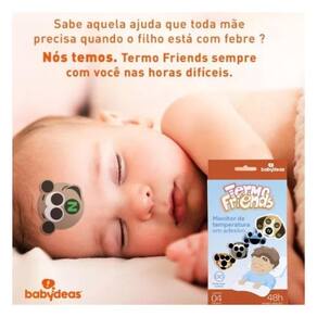 Kit 4 unidades adesivo medidor termo friens babydeas cada caixa contém 4 unidades de adesivo Termo friends: o adesivo monitor de temperatura, uma forma divertida de monitorar a febre e a temperatura corporal sem incomodar a criança. É ativado pelo calor do corpo, pelo método de cristal líquido encapsulado, é extremamente sensível ao calor, ajudando a mãe a cuidar do seu bebê por até 48 horas seguidas. Basta colar o adesivo na testa da criança para obter imediatamente a indicação visual através da graduação que acenderá, sendo: n = neutro, 37/38/39/40 graus centígrados. A embalagem contém 04 unidades e os adesivos são descartáveis. Produto atóxico e hipoalergênico. Marca: Não Informado Ean: 7907135796132