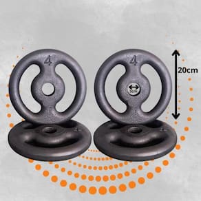 Kit 4x Anilhas de Ferro 04Kg Kit 4x Anilhas de Ferro 04Kg - Anilhas&Cia O Kit Anilhas de Ferro 04Kg é feita em ferro fundido de alta resistência, com pintura eletrostática que protege contra oxidação e desgaste. Possui furação padrão de 30mm, compatível com barras de musculação, e design compacto para fácil manuseio. Ideal para treinos de força, musculação e condicionamento físico, podendo ser Utilizado em exercícios como supino, agachamento, rosca direta e tríceps testa. Ficha técnica resumida: Peso: 16kg Material: ferro fundido Acabamento: pintura eletrostática preta Furação: 30mm Dimensões: 3 x 20 20 cm Conteudo da Embalagem: 04 Unidades de Anilha Ferro 04kg : 3 meses Marca: Não Informado Ean: 0000632985478