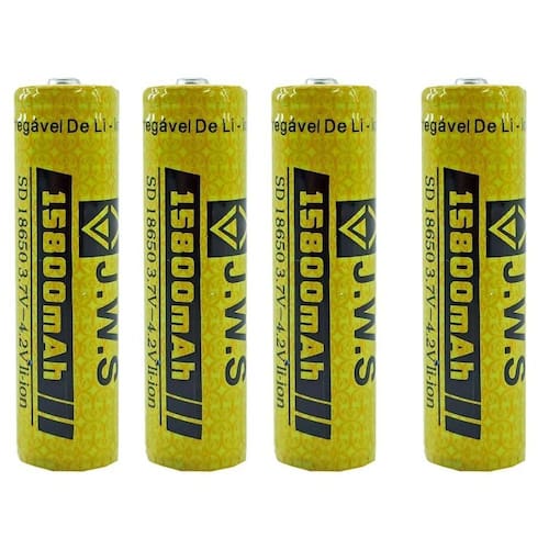 Kit 4X Bateria Mega Forte 18650 4,2V 15800mAh JWS até 11h Tecnologia Avançada