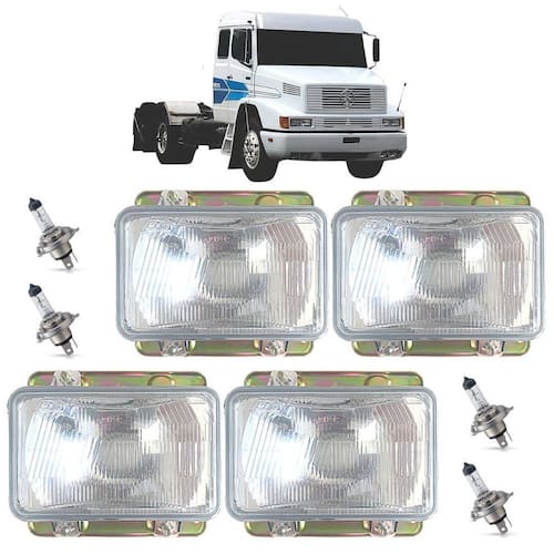 Kit com 4 faróis para caminhões mercedes bicudo + 4 lâmpadas h4 12 volts Modelo alto e baixo com vigia Aplicação: modelos de 1993 a 2004 - 1214 - 1418 - 1618 - 1935 - 1844