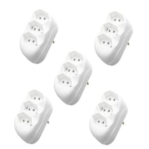 Kit com 5 Adaptadores T em barra de tomada 10A 3 pinos - Flp.