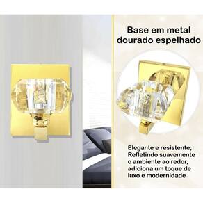 Descrição: - Materiais: metal e cristal k9. - Dimensões do cristal CxLxA : 7 cm x 7 cm x 4 cm - Dimensões da base: Altura: 12 cm Largura: 10 cm Profundidade: 2 cm - Profundidade total da arandela: 10 cm