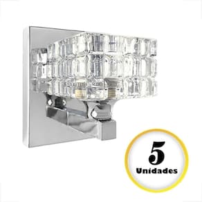- Materiais: metal e cristal k9. - Dimensões do cristal CxLxA : 7 cm x 7 cm x 4,5 cm - Dimensões da base: Altura: 12 cm Largura: 10 cm Profundidade: 2cm - Profundidade total da arandela: 10,5 cm