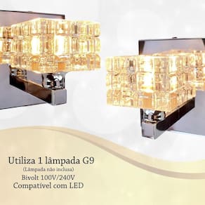 - Soquete: G9 - Tensão: Bivolt - Tipo de lâmpadas: Pode utilizar lâmpada LED ou halógena