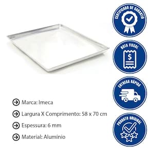 - Com dimensões de 58x70x3,5 cm, ela é ideal para assar grandes quantidades de pães doces de forma eficiente e homogênea.