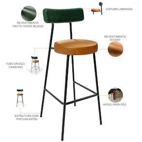 Amplamente moderna, dispondo de muito realce e design singular, o Kit 05 Banquetas Alta Cozinha Sala De Jantar Aço Milão L02 Facto Verde Musgo Couríssimo Whisky - Lyam Decor vem com a personalidade e elegância que sua decoração merece! Estruturada em aço carbono, contrasta lindamente com o encosto e assento estofados, cabe mencionar ainda o revestimento do seu encosto em Facto e do assento em Couríssimo , é confeccionada por materiais de excelente qualidade, extremamente resistentes e aconchegantes.