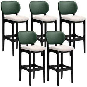 Amplamente sofisticado, o Kit 5 Banquetas Alta Bar Cozinha Sala Jantar Fixa Betta L02 Preto Facto Verde Linho Cru - Lyam Decor irá agregar ainda mais valor em sua decoração!! Sendo capaz de compor muito bem o ambiente, é produzido com materiais de excelente qualidade, a resistente estrutura em madeira de Taeda, na cor preto, conta com apoio para os pés (que garante maior segurança), além do assento e encosto estofados super confortáveis e convidativos, que são revestidos em tecido Facto e Linho, composição extremamente elegante.