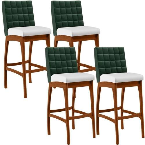 ndo muita excelência, o Kit 5 Banquetas Altas Cozinha Sala Jantar Fixa Mila B04 Facto Verde Musgo Corano Branco - Lyam Decor é o complemento que faltava para deixar sua casa ainda mais extraordinária. Seu encosto com costura em padrão quadriculado e assento estofados, centralizam em si uma graciosidade estonteante, sem perder todo o conforto. A estrutura em madeira, na cor nozes, também é digna de notoriedade, por imprimir bastante personalidade a sua decoração. Vale ressaltar ainda, o apoio para os pés que garante maior à banqueta.