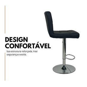 Base e Apoio de Pés: Aço cromado com regulagem de altura e assento giratório