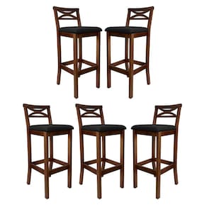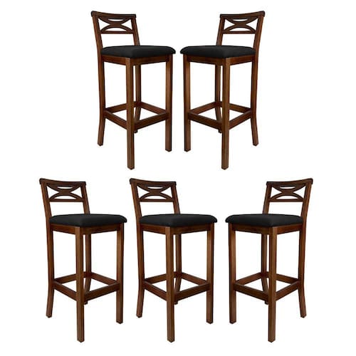 Kit 5 Banquetas Média Estofada para Bancada Madri Madeira Castanho Suede Preto CCS