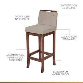 O Kit de Banquetas Média Estofada Turim é um móvel versátil que vai deixar seu ambiente cheio de estilo. Possui um design atual com cores sobreas que pode ser aplicada em diversas composições e decorações. Por causa da sua versatilidade consegue ser utilizada em diferentes ambientes como bancadas altas, espaços gourmet, salão de festas, bares, cantinho do churrasco ou onde você precisar. Seu assento é preenchido com espuma D26, o encosto com espuma D23 e o revestimento é com tecido suede que proporciona conforto e elegância. A Banqueta Turim é produzida com materiais de excelente qualidade, garantindo sua durabilidade e vida útil. Móveis sofisticados e com alta qualidade, só na CCS Interiores.