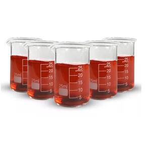 Becker de vidro forma baixa graduado 25ml bequer - caixa com 5 unidades