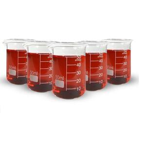 Becker de vidro forma baixa graduado 50ml bequer - caixa com 5 unidades