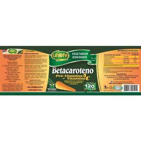 Betacaroteno da Unilife Vitamins é um suplemento em cápsulas à base de betacaroteno pró-vitamina A e vitamina C.