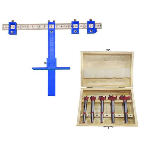Kit 5 Brocas Forstner Fresa 15 a 35mm para Dobradiça + Gabarito Jig Esquadro Guia para Furações Precisas - CHARBS