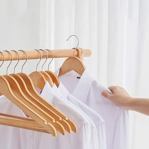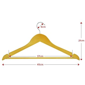- Kit com 5 Cabides - Produzido em Madeira de Alta Qualidade - Seu Guarda Roupas Padronizado e Organizado - Elegante e Durável - Gancho Giratório - Medidas Externas: 45cm x 21cm Largura x Altura - Largura Interna para pendurar Calça de 37cm - Gancho para Tubos de Até 4cm