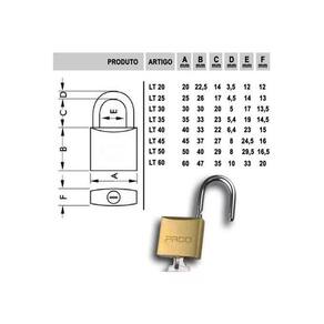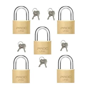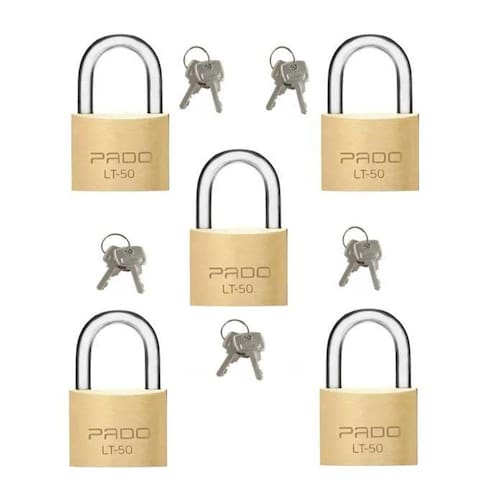 Conteúdo: - 5 un. Cadeado em latão lt-50 mm pado - 2 un. Chaves cada cadeado segredos diferentes