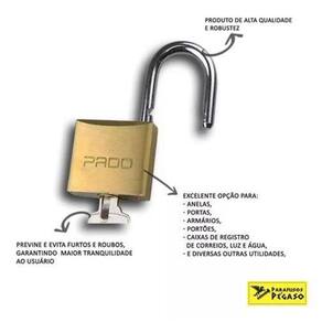 Mais: O cadeado em latão da pado latão 50 mm é feito em latão maciço com 50 mm. Conta com haste resistente fabricada em aço.