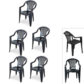 Kit 5 Cadeira Poltrona Plástico Vime Multiuso Lazer Preta