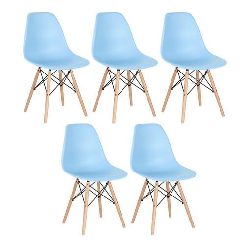 Kit 5 Cadeiras Charles Eames Eiffel Dsw Com Pés De Madeira Clara Azul Claro