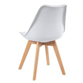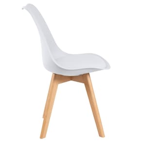 Cadeira modelo Leda: Material do encosto: Polipropileno - Material do assento: Couro PU - Material dos pés: Madeira natural - Altura do encosto: 82 cm - Altura do assento: 44 cm - Largura do assento: 48 cm - Profundidade do assento: 43 cm - Distância entre os pés: 42 cm - Peso suportado: 130 kg - Garantia: 3 meses.