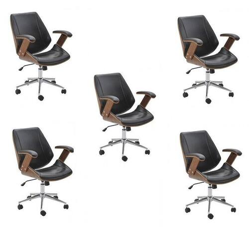 Cadeira office giratória com ajuste de altura, estrutura em madeira com estofado revestido em poliuretano (PU), possui apoio para braços. Base cromada em formato estrela com rodízios em nylon. Altura do Conjunto: 99 cm Ambiente: null Ambiente Principal: Escritório Cor: Preto Cor do Produto: Preto Informação Complementar: 5x Cadeira de Escritório Diretor Giratória Office Lisboa Preto Largura: 63 cm Altura: 99 cm Peso: 15 kg Profundidade: 61 cm Necessita Montagem: Sim